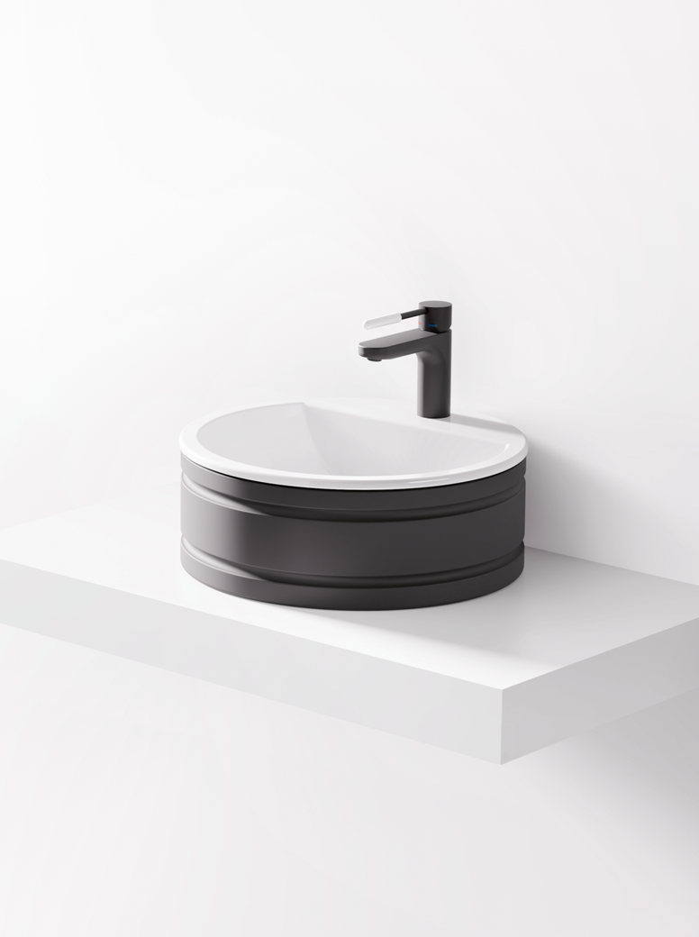 Neben klassischem Weiß sind heute auch schwarze Design Waschtische gefragt. Besonders spannend wird es, wenn innen und außen unterschiedliche Farben kombiniert werden – etwa eine weiße Innenseite mit einer dunklen Außenseite. Diese Zweifarbigkeit sorgt für Kontraste, die in modernen Design Bädern gezielt eingesetzt werden.