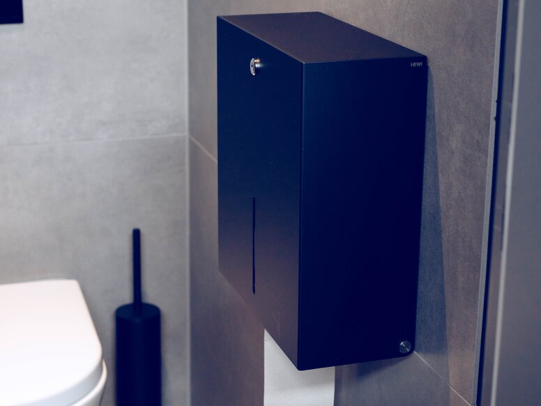Schwarz ist minimalistisch, zeitlos und edel. Oberflächen in Schwarz matt sind darüber hinaus haptisch angenehm und passen harmonisch in zeitgenössische Interieurs, insbesondere zum rauen Industrielook, in dem gegenwärtig viele Hotels, Gastrobereiche und Büros gestaltet werden. Auch in privaten Badezimmern sind Produkte in Mattschwarz ein Designstatement. HEWI, der Experte für barrierefreie Sanitärlösungen und Beschläge, bietet nun zahlreiche Produkte in mattschwarzem Finish, mit denen sich von der Tür bis ins Bad ein durchgängiges und stilvolles Interior Design verwirklichen lässt. Neu dazugekommen sind eine filigrane Sitzfamilie sowie verschiedene Desinfektionsspender in Schwarz matt.