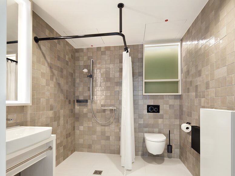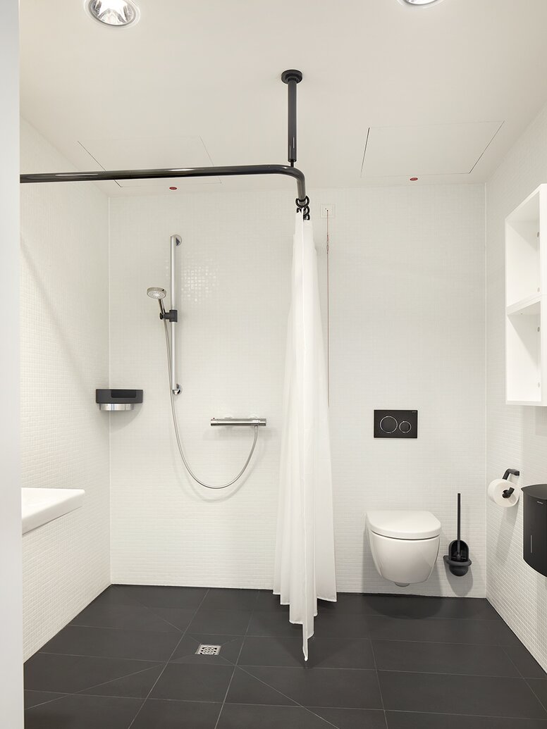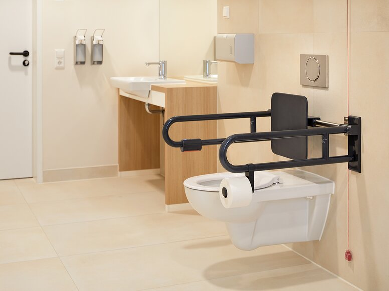 Mental illnesses are often the result of physical pre-existing conditions, according to Schadow, who has specialised in the field of hospital planning for many years: “We may therefore be dealing with patients who are at high risk,” which means that hospital hygiene has to be assessed again according to even more factors. However, as excessive cleaning has exactly the opposite effect, Schadow says it is particularly important to create a good environment: “One that has a healing effect and in which one feels in good hands. Various components play a role here – including the products used.” HEWI’s solutions in the new hospital building cover not only the hygiene component but also the important issue of accessibility.