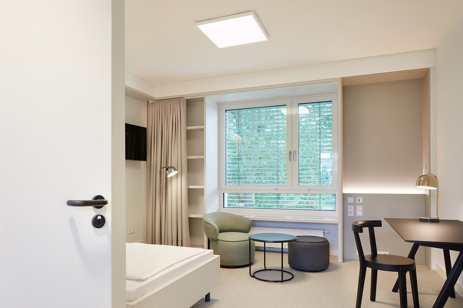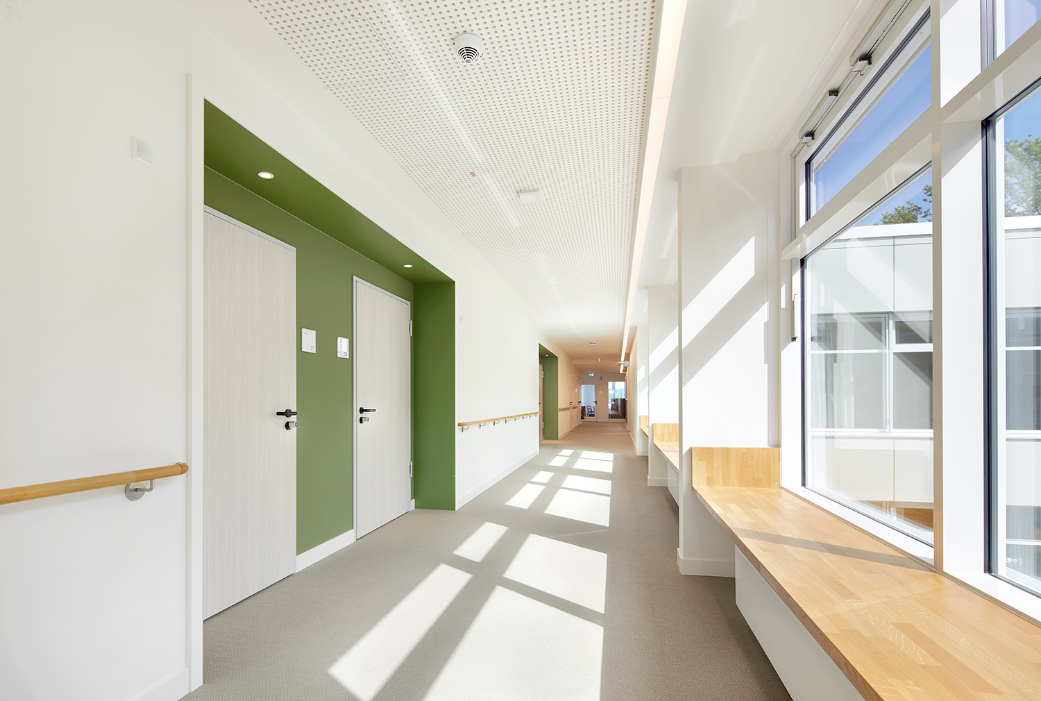 The new Fachkrankenhaus für die Seele psychiatric hospital at the Wahrendorff Clinic in Sehnde impressively demonstrates that architecture can support a healing effect. The guiding principle of the design by tsj-architekten was to create “a stimulating and varied environment as a healing environment for body, mind and soul”. All decentralised inpatient services were brought together in the architecturally successful new clinic building, enabling individualised therapies and many accompanying services. The architecture firm opted for stylish solutions with maximum user comfort from HEWI for consistent planning down to the last detail.