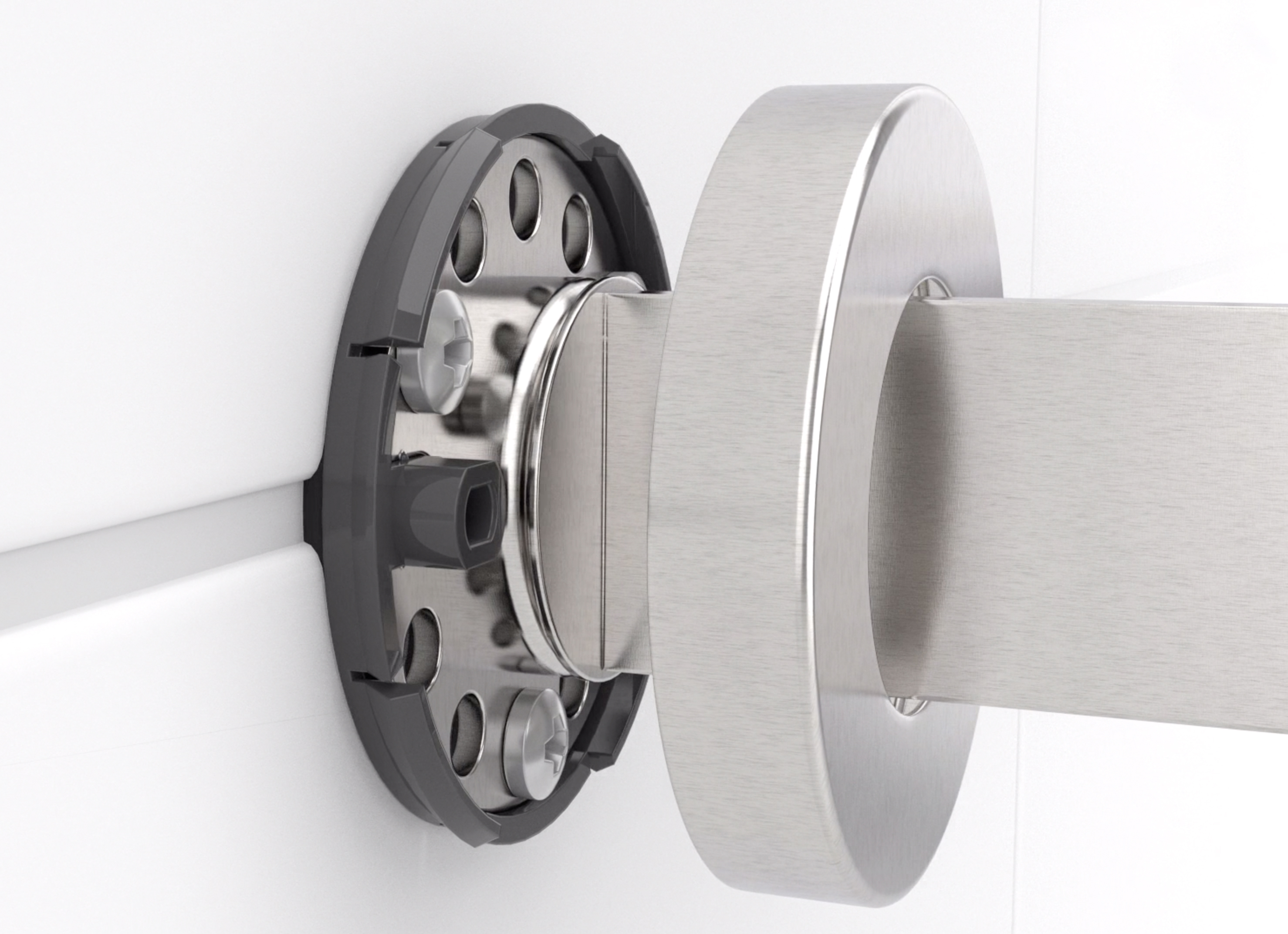 With the HEWI sealing element in accordance with the requirements of DIN 18534-1, a quickly implementable and reliable seal is available for shower walls in bathrooms. Due to wall unevenness, conventional fixing rosettes often do not lie completely against the wall - for example with joint crosses and tile offsets.