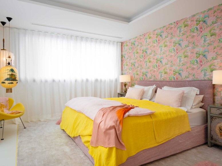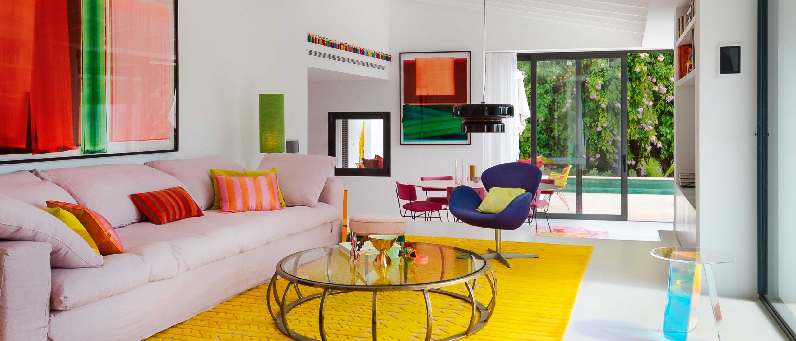 De hoogwaardige inrichting van het pension zet kleuren in het middelpunt. Gecombineerd met minimalistische interieurideeën, moderne lijnen en grote ramen die de kamers openen, ontstaat een interieurconcept dat uitnodigt tot dromen. Het moderne huis wordt omgeven door hoge bomen die bescherming bieden tegen de Spaanse zon, evenals de turkooisblauwe Middellandse Zee. De kleur van de zon wordt weerspiegeld in verschillende accenten in het interieur van het vakantiehuis. Of het nu gaat om tapijten, kussens, beddengoed of de iconische deurkruk 111 van HEWI in de kleur mosterdgeel.