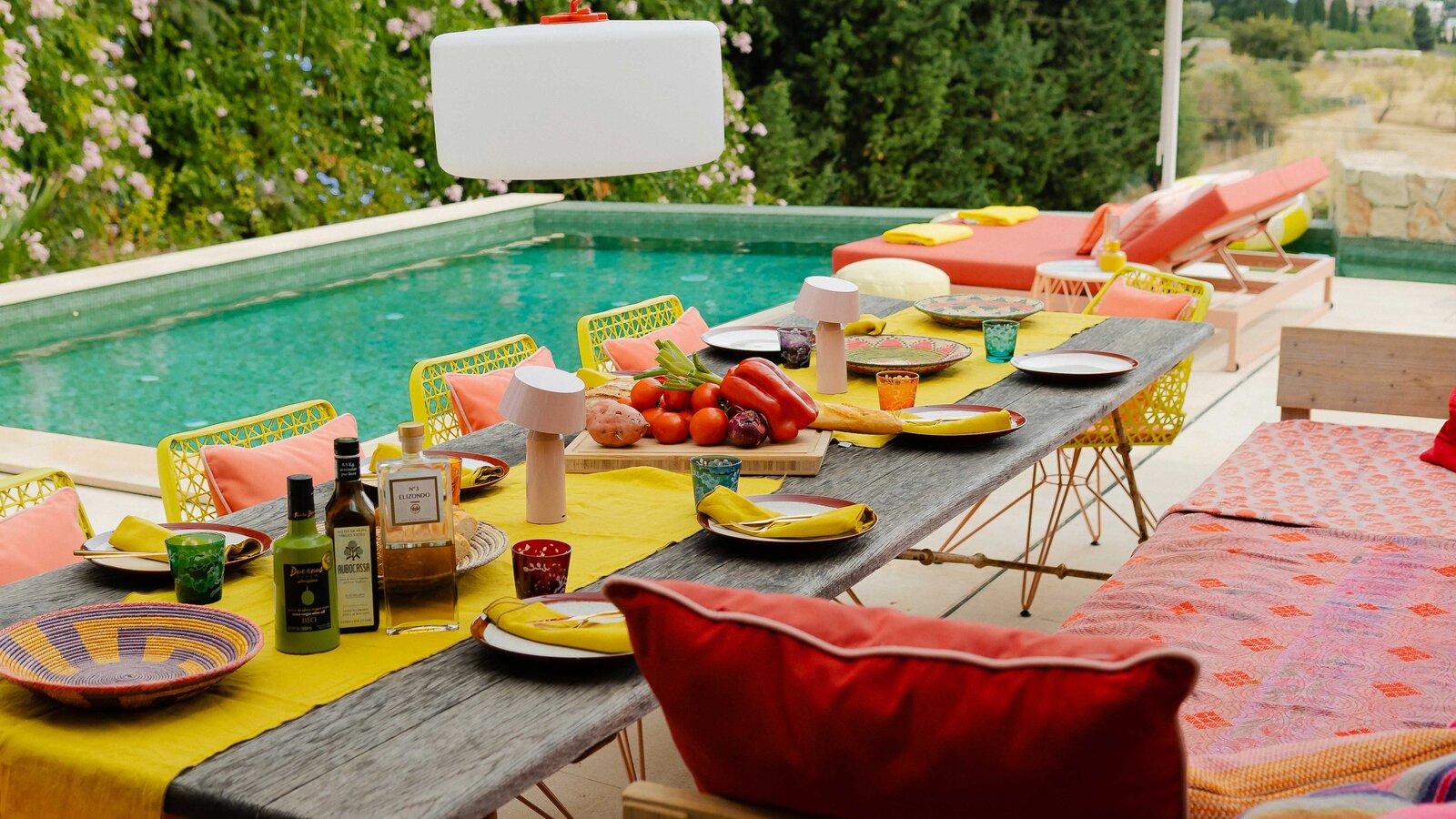 Op het populaire vakantie-eiland Mallorca nodigt een kleurrijk ontworpen vakantiehuis zijn gasten uit om onder schaduwrijke bomen te genieten van de Middellandse Zee en heerlijk te ontspannen. Het huis ligt afgelegen in het hart van Mallorca - de locatie wordt gekenmerkt door rust en stilte, die bijzonder uitnodigend zijn voor een ontspannen vakantie.